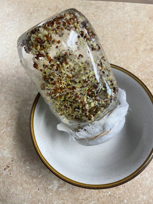 Photo to the right shows the seed sprouting progress in just a few days. The seeds sprouted were a great addition to summer salads and to top burgers for added crunch
